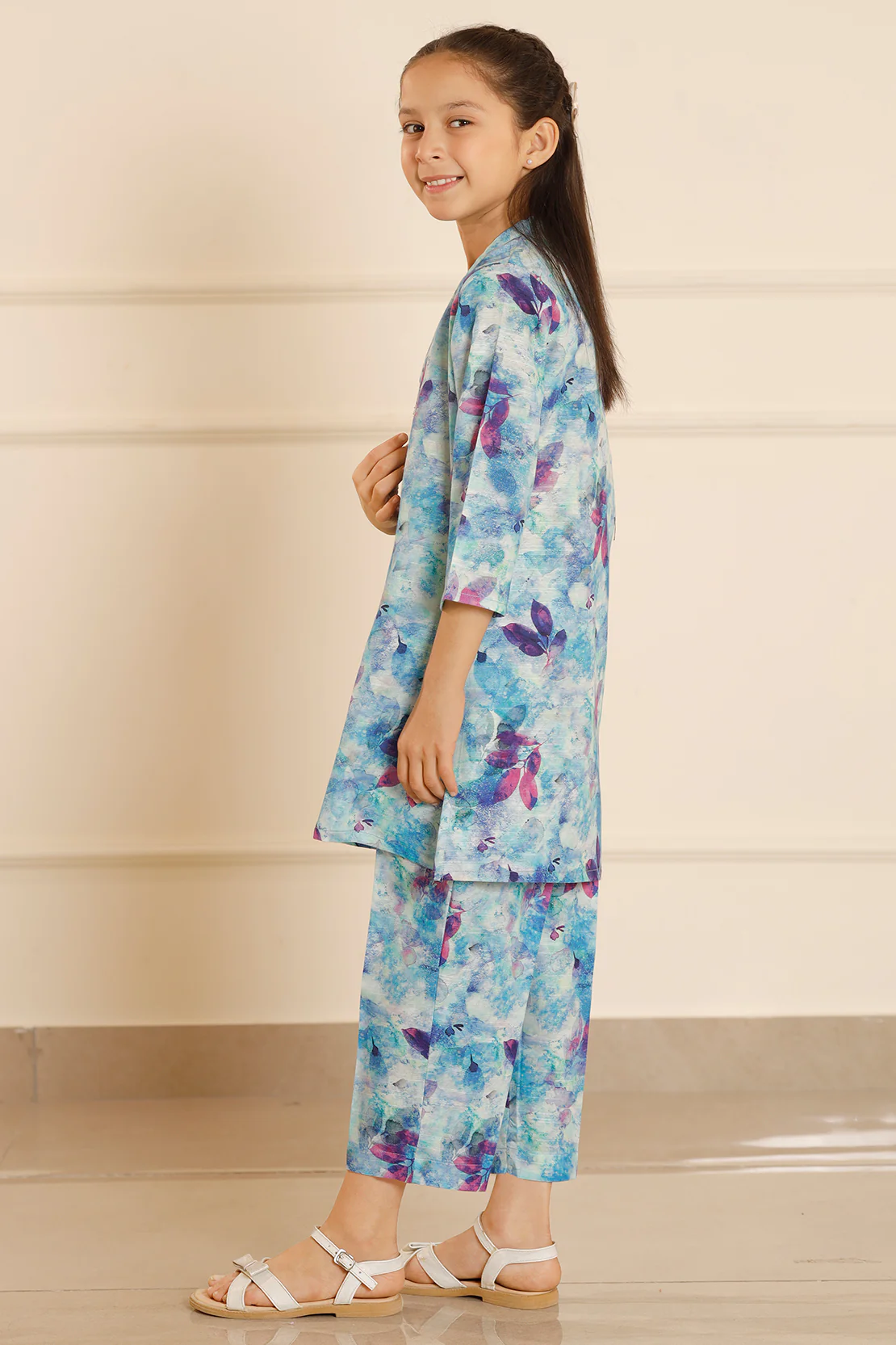 Introducing Saya's Printed Khaddar Stitched Shirt and Trouser set for kids, designed to provide warmth and style during the cooler months. This ensemble features a premium khaddar fabric, known for its softness and durability, ensuring comfort for your child throughout the day. The set includes a beautifully printed blue shirt paired with matching trousers, making it a versatile addition to your child's wardrobe.