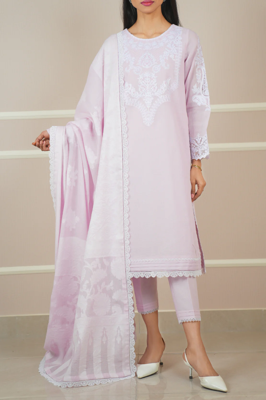Experience timeless elegance with Saya’s Unstitched Embroidered Cotton Net 3‑Piece suit. Crafted with delicate embroidery on breathable cotton net and paired with a premium cotton-silk inner, this ensemble offers comfort and grace for festive and semi-formal occasions.