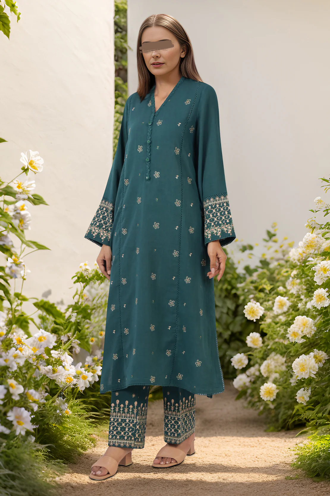 Embrace the warmth of winter with this unstitched embroidered khaddar 2-piece set in an elegant teal green. Featuring premium khaddar fabric, the ensemble includes a 1.20-meter embroidered shirt and a 1.10-meter embroidered trouser, perfect for creating customized winter looks. The intricate embroidery and soft fabric make it ideal for festive occasions or casual wear.